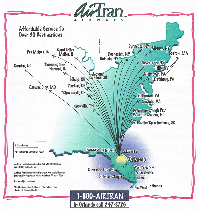 First AirTran Airways route map, 1997 | The first AirTran Ai… | Flickr