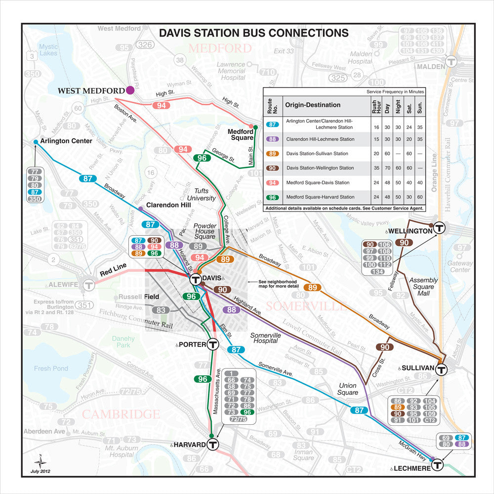 MBTA Davis Station Bus Connections Map (Jul. 2012) โ MBTAgifts