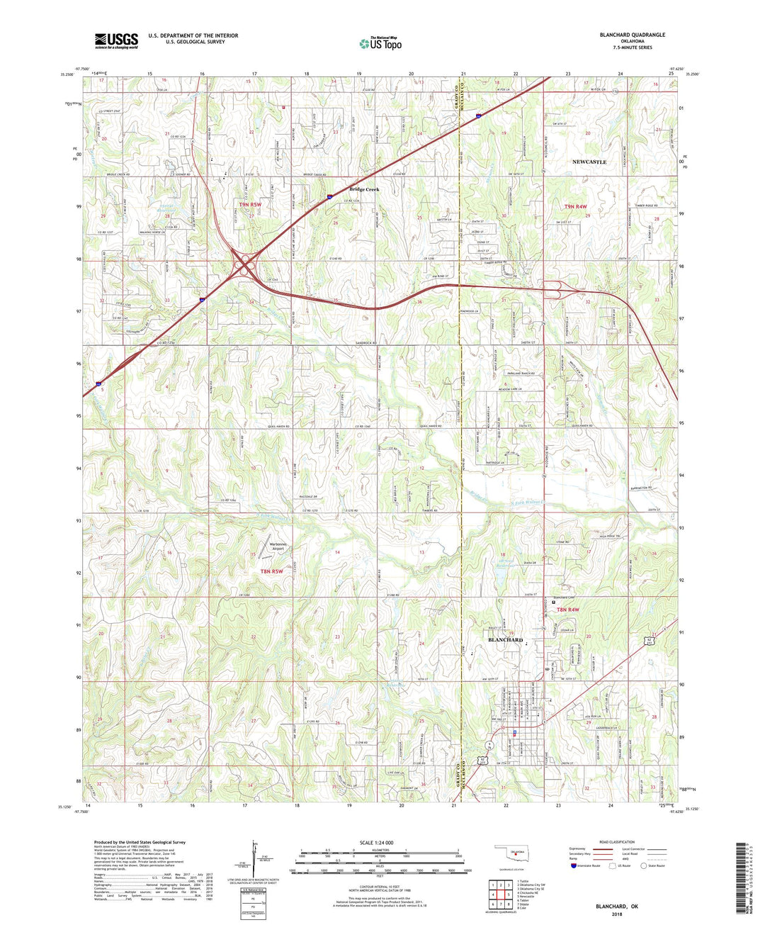 Blanchard Oklahoma US Topo Map โ MyTopo Map Store