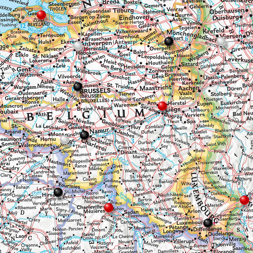 France, Belgium, and The Netherlands Classic Style Wall Map