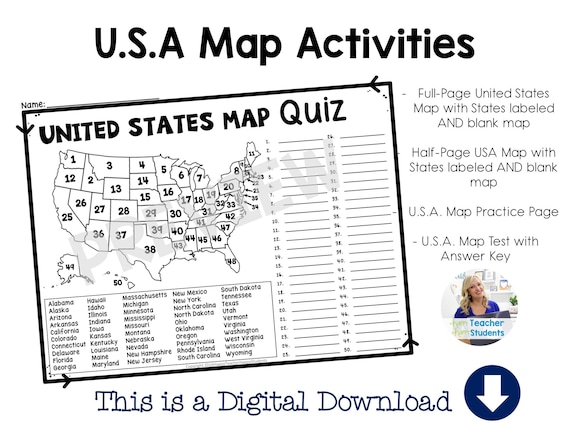 United States Map Quiz & Worksheet: USA Map Test With Practice