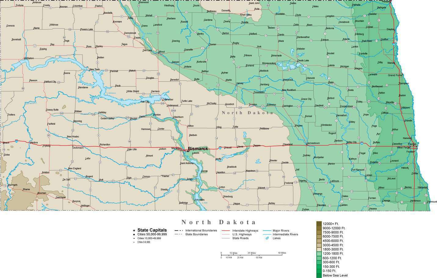 North Dakota Contour Map in Adobe Illustrator Digital Vector Format