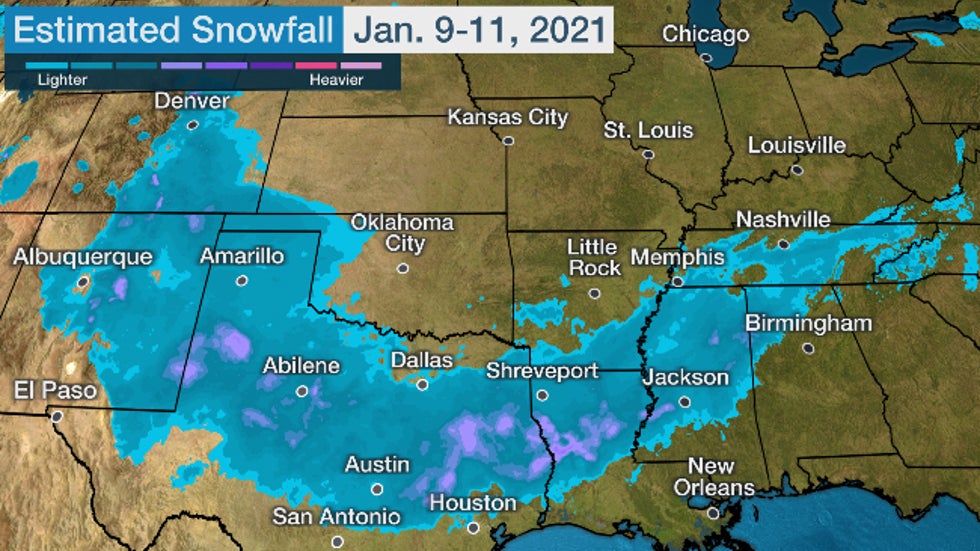 Winter storm will bring snow from Texas to Mississippi on Sunday